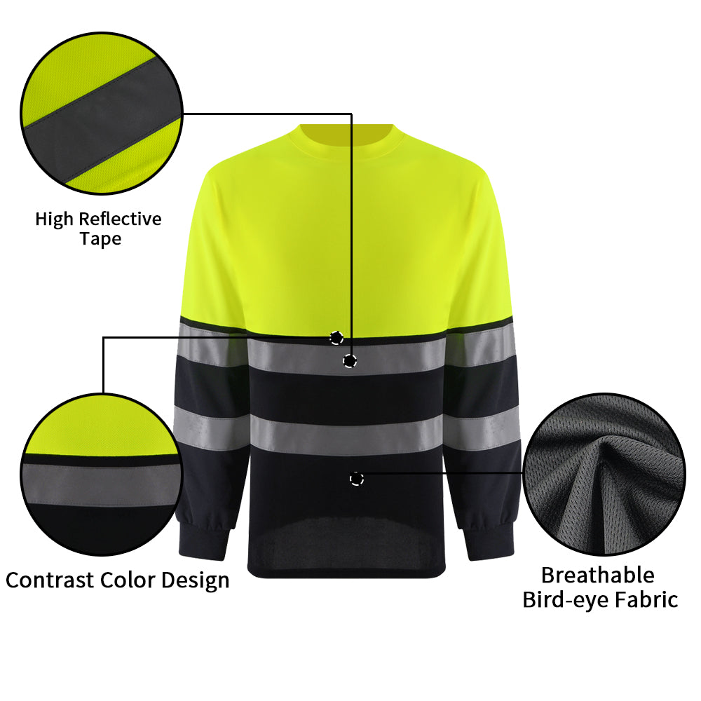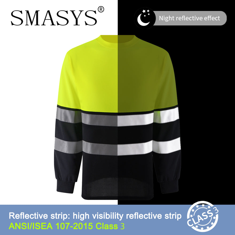 SMASYS Long Sleeve Hi Vis Work Shirt, Reflective Safety Shirt