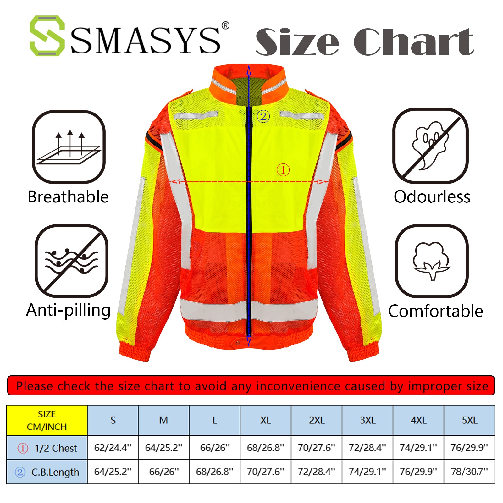 Chaquetas de malla de alta visibilidad SMASYS con cremallera, chaquetas de seguridad de alta visibilidad clase III