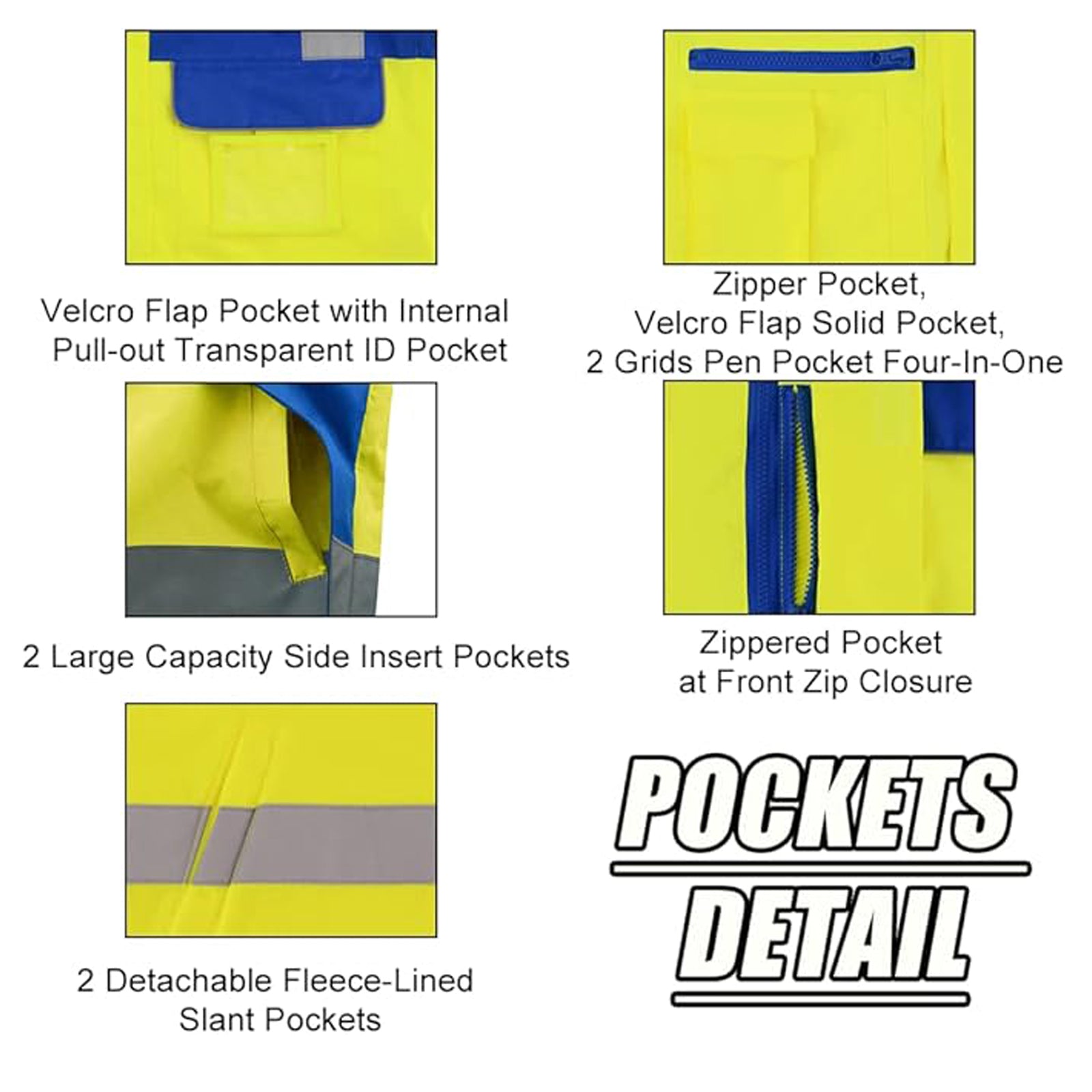 Vestes coupe-vent de sécurité 4 en 1 SMASYS, manteau d'hiver haute visibilité avec doublure polaire
