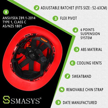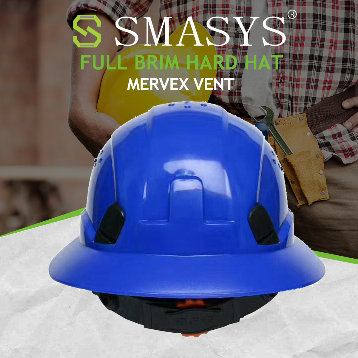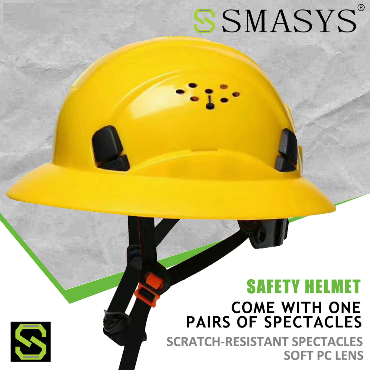 Casque de sécurité à bord complet SMASYS Casque de sécurité de construction ventilé Casque de travail ABS pour hommes et femmes Suspension à cliquet réglable à 6 points Conception de motif personnalisé