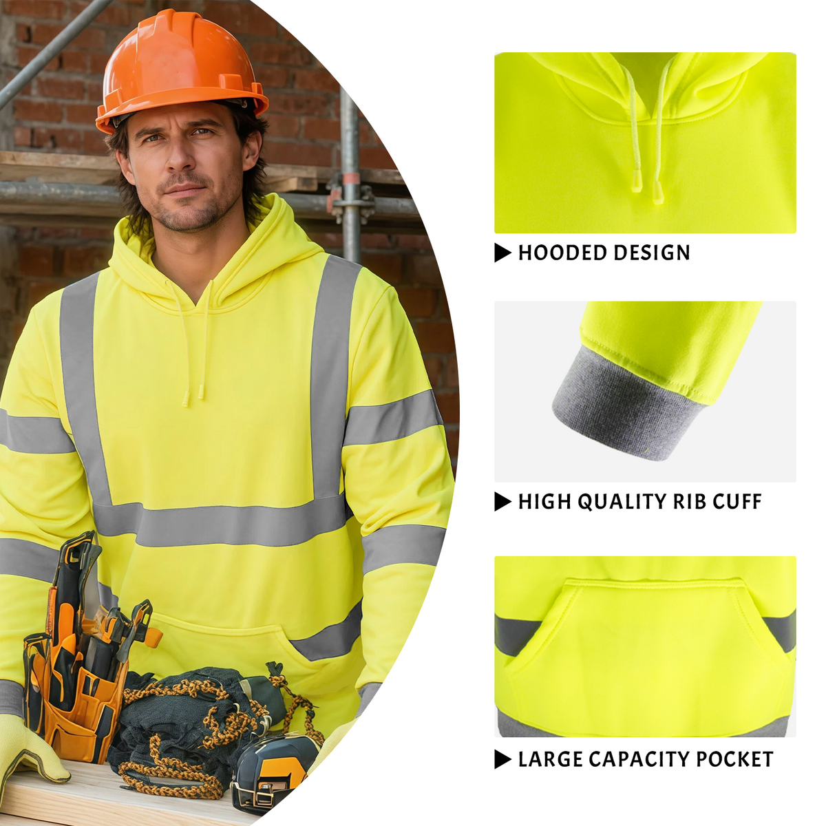- 【COMPLIANCE & SAFETY】Featuring 2'' wide silver reflective stripes in an H-back pattern, to make sure you're always as visible as possible during extreme weather and other low-light work environments. This reflective hoodie is in full compliance with ANSI/ISEA 107-2015 Class 2 for all occupations and available in sizes Small to Large. Perfect purchase with your hard hat, safety glasses, safety vests, and jackets.