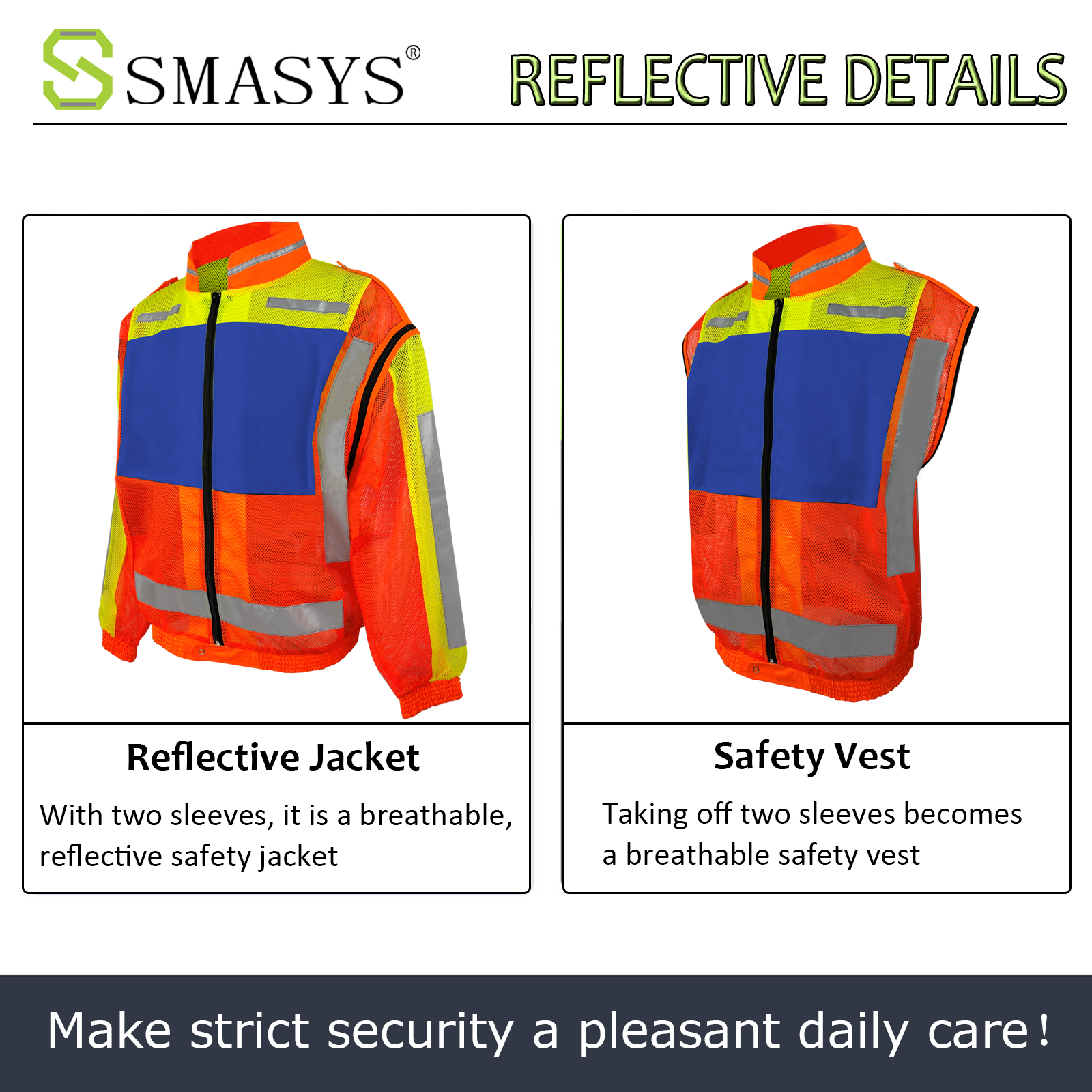 SMASYS Hi Viz Mesh Safety Jackets with Detachable Sleeves