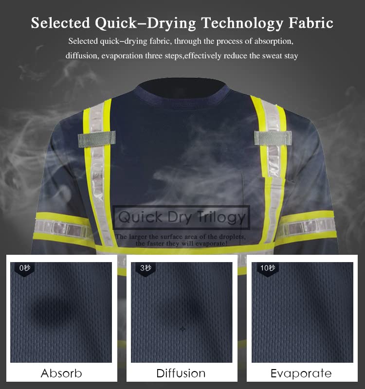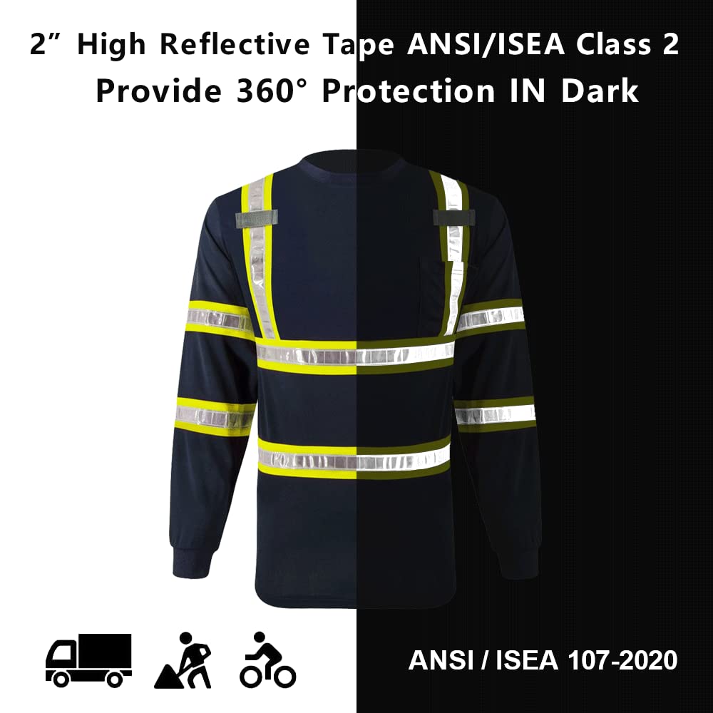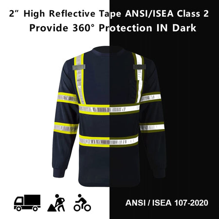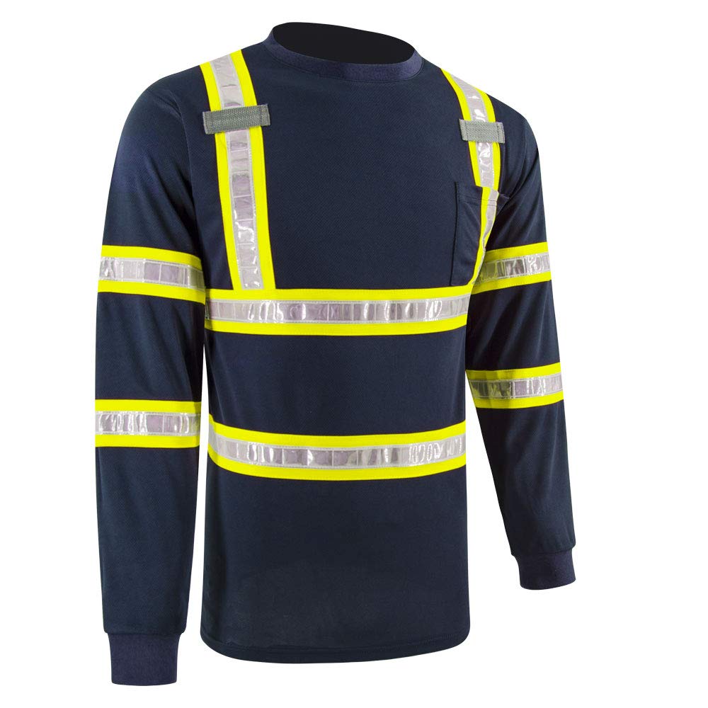 - HIGH CONTRAST - 1-inch reflective stripes are sewn on a 2-inch fabric, making this safety T shirt wear much more like a work t-shirt. while looking sharp in safety and comfort.