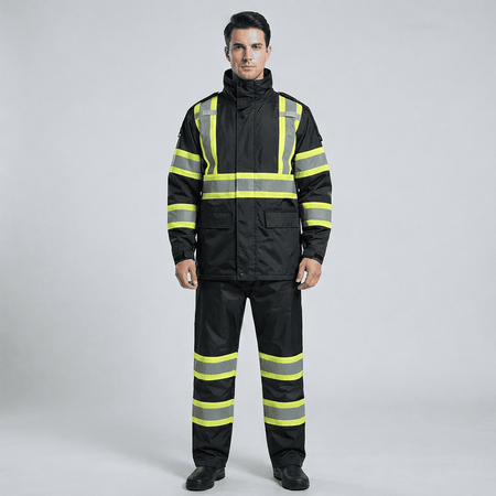 SMASYS Outdoor Black Safety Raincoat Set with High Visibility Reflective Tape