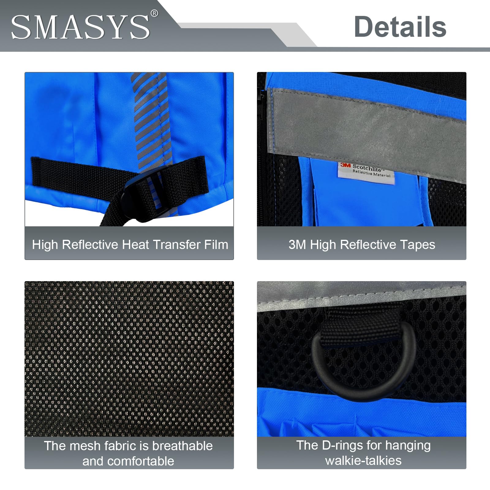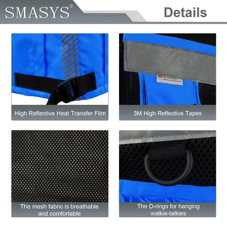 MATERIALS: Our reflective vest is made of Oxford fabric,100% polyester knitting fabric, and sandwiched mesh, lightweight and breathable for the tough. A zipper is used for the doorway and two front pockets of the reflective vest; a nylon zipper is used for the rest. Each zipper has a sling. The black ribbon on the pocket is convenient for opening the pocket. The pockets on both sides also have hooks and loops to prevent goods from falling. D-rings for easy hanging of walkie-talkies and work cards.