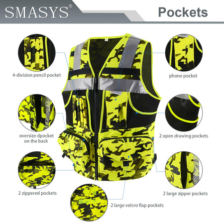 This Safety Vest comes with 8 front pockets with zipper velcro clamshell closure for easy categorization and easy access that bring you great onvenience.