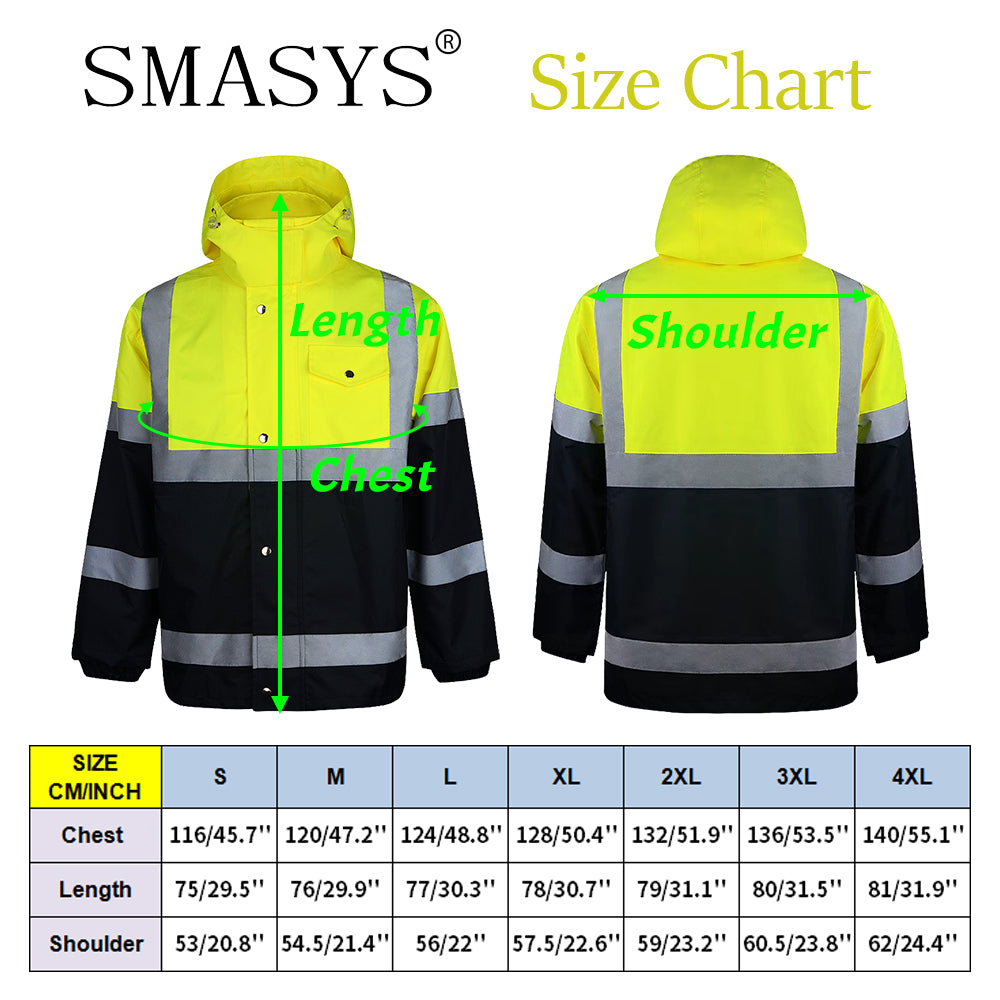 SMASYS Safety Jacket, High Visibility Waterproof Raincoat with Hood
