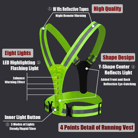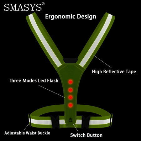 SMASYS Fluorescent Adjustable Belt Led Light Sport Running Safety Vests
