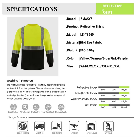 SMASYS Hi Vis Safety Shirts wih Black Bottom, Long Sleeve Reflective Shirts