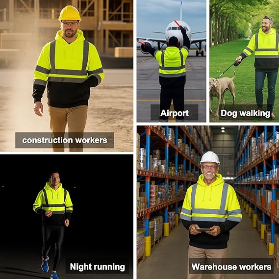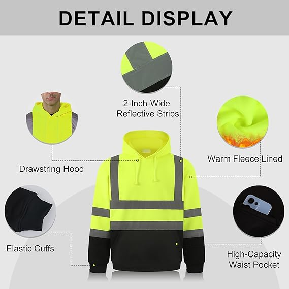 - 【COMPLIANCE & SAFETY】Featuring 2'' wide silver reflective stripes in an H-back pattern, to make sure you're always as visible as possible during extreme weather and other low-light work environments. This reflective hoodie is in full compliance with ANSI/ISEA 107-2015 Class 2 for all occupations and available in sizes Small to 3X-Large. Perfect purchase with your hard hat, safety glasses, safety vests, and jackets.