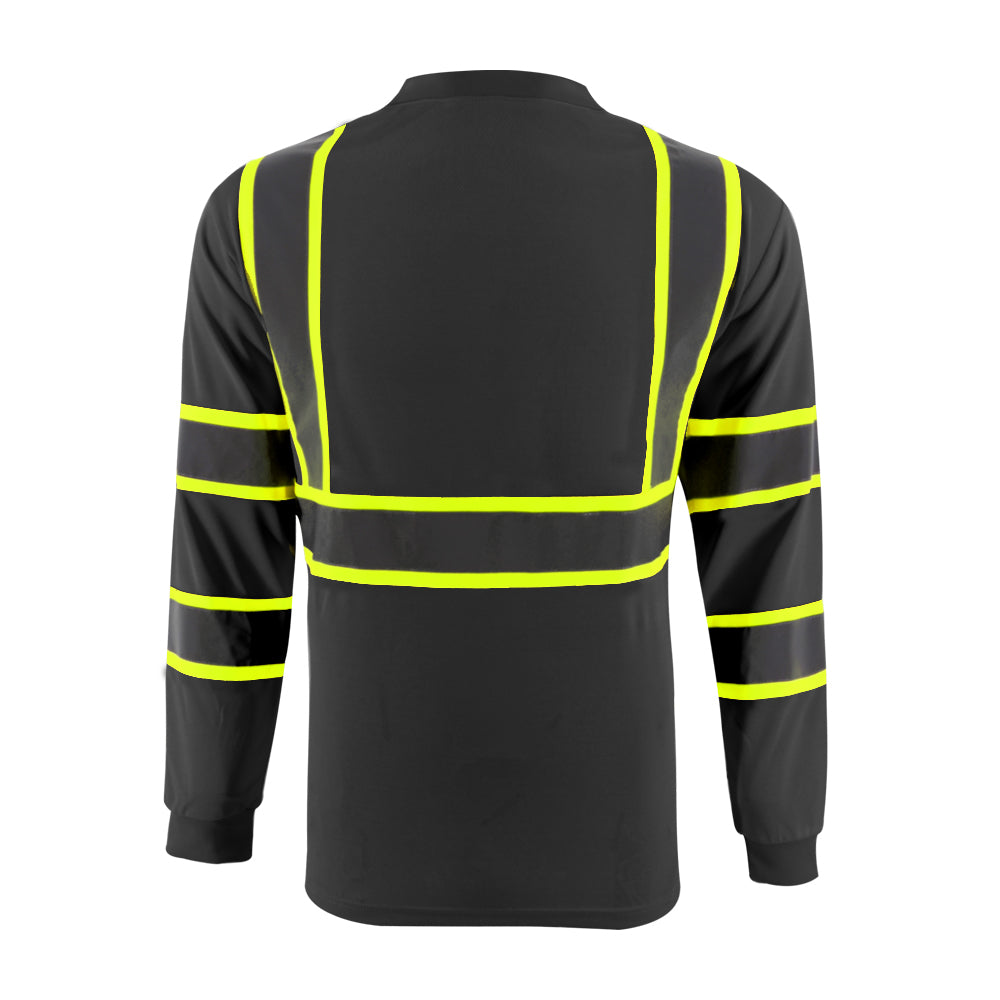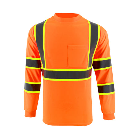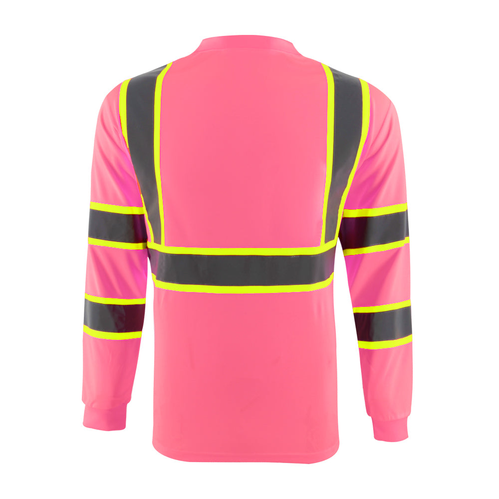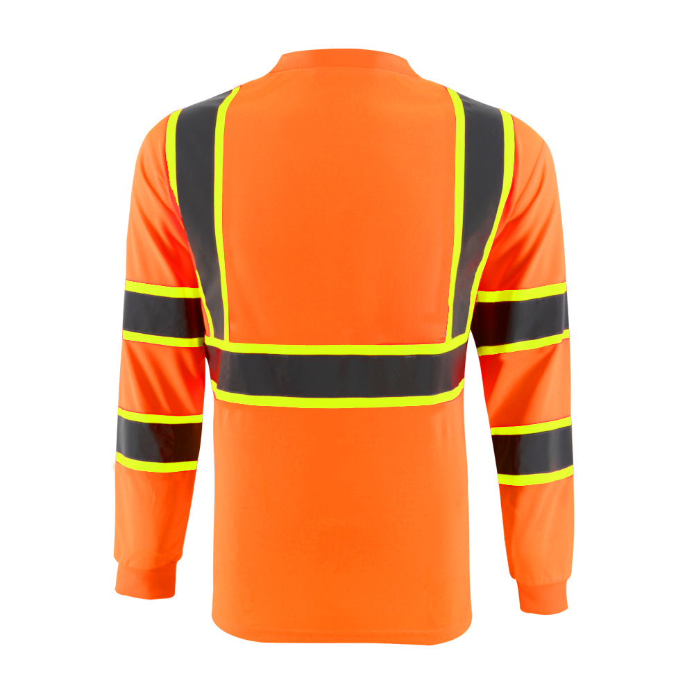 SMASYS Hi Vis Long Sleeve Safety T Shirts Construction Dual-Tone Reflective Strips with Chest Pocket