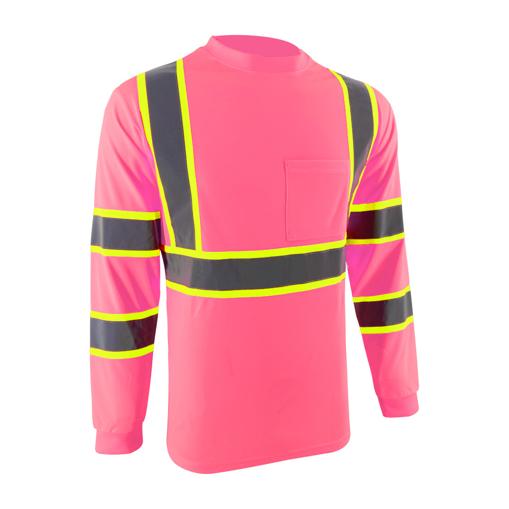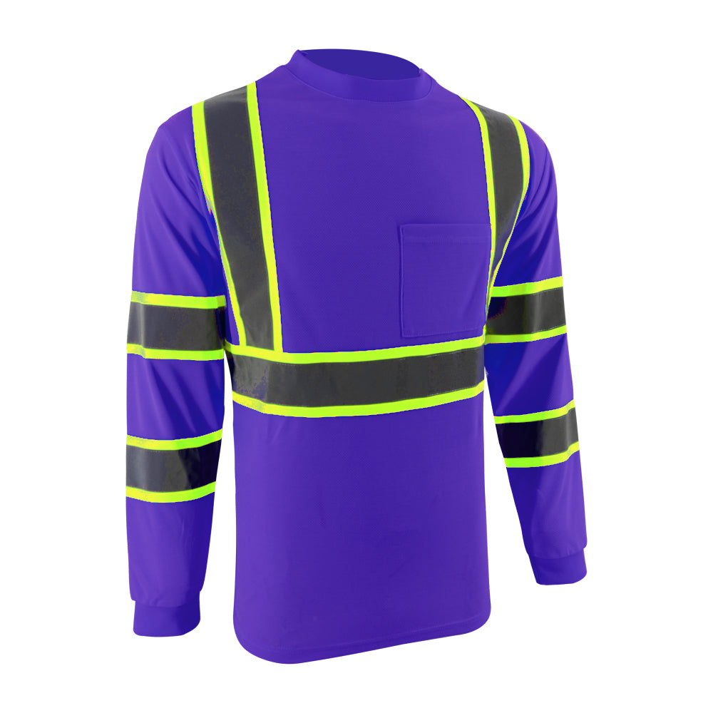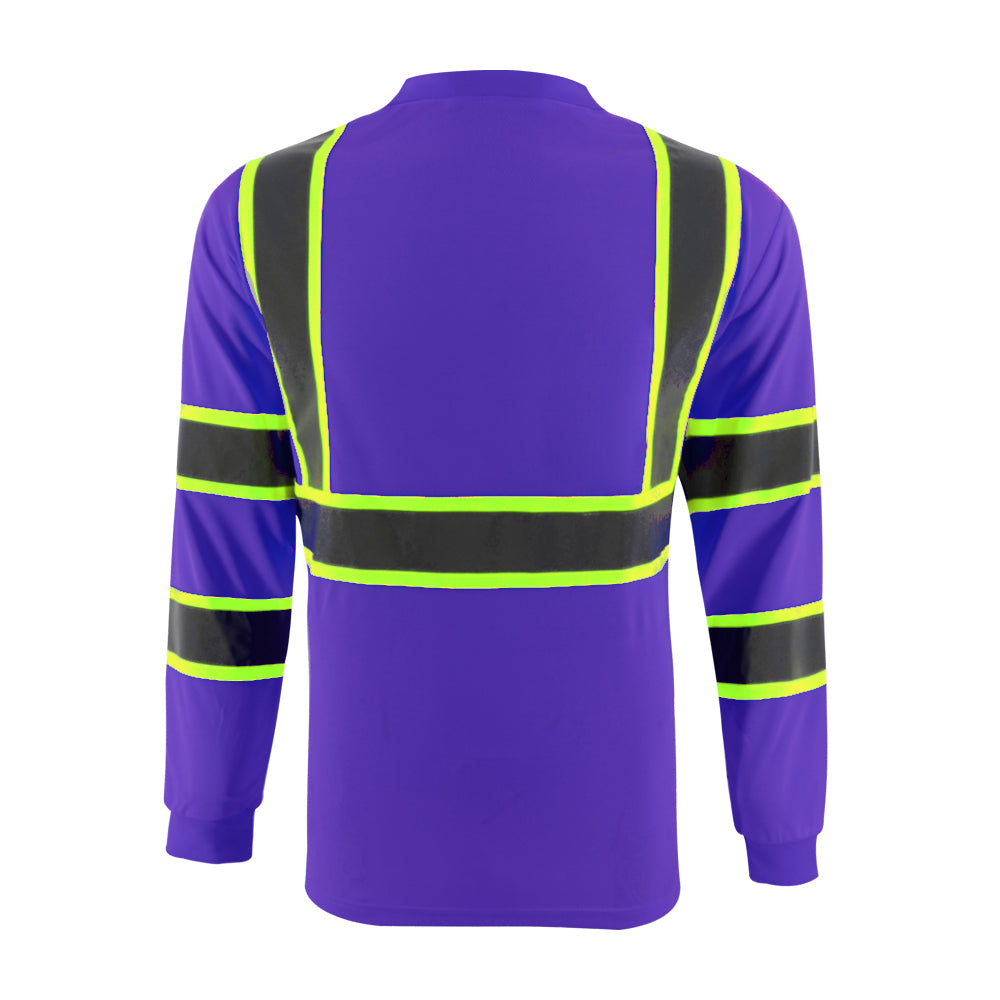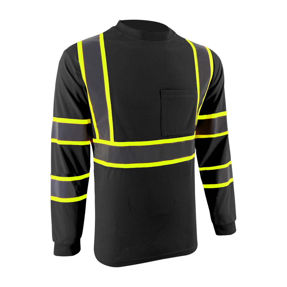 SMASYS Hi Vis Long Sleeve Safety T Shirts Construction Dual-Tone Reflective Strips with Chest Pocket