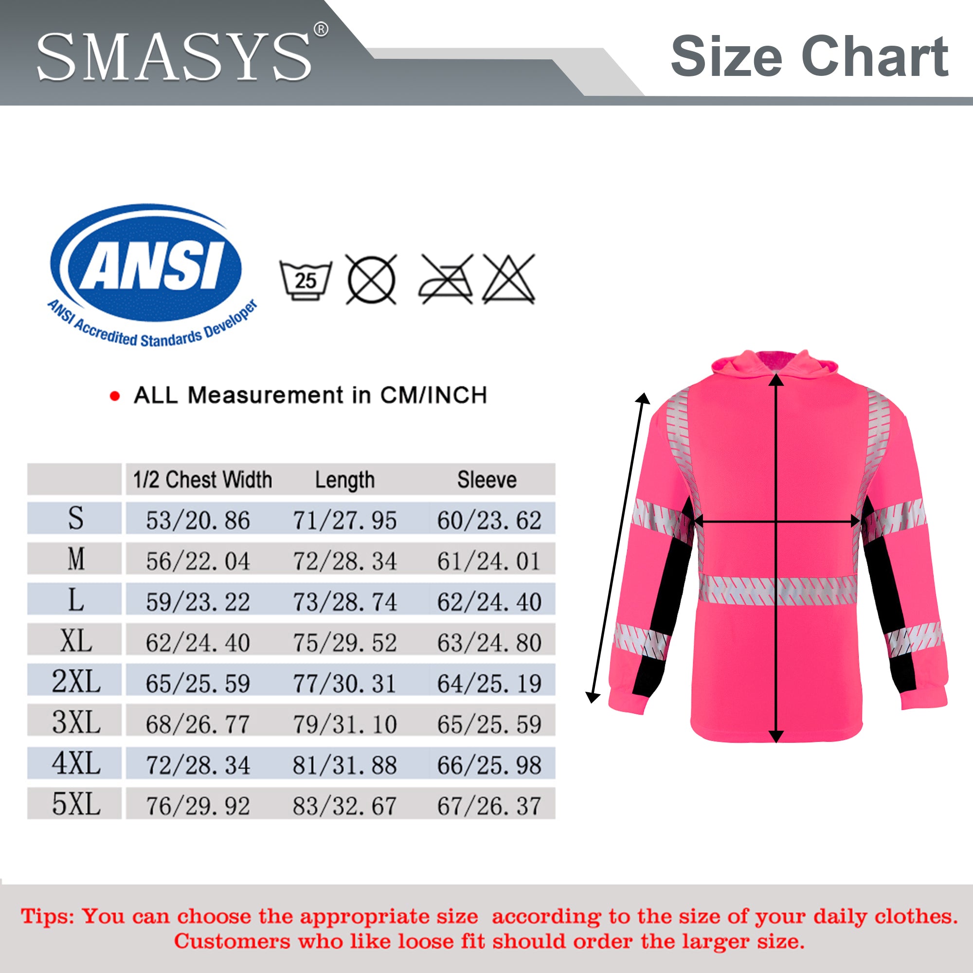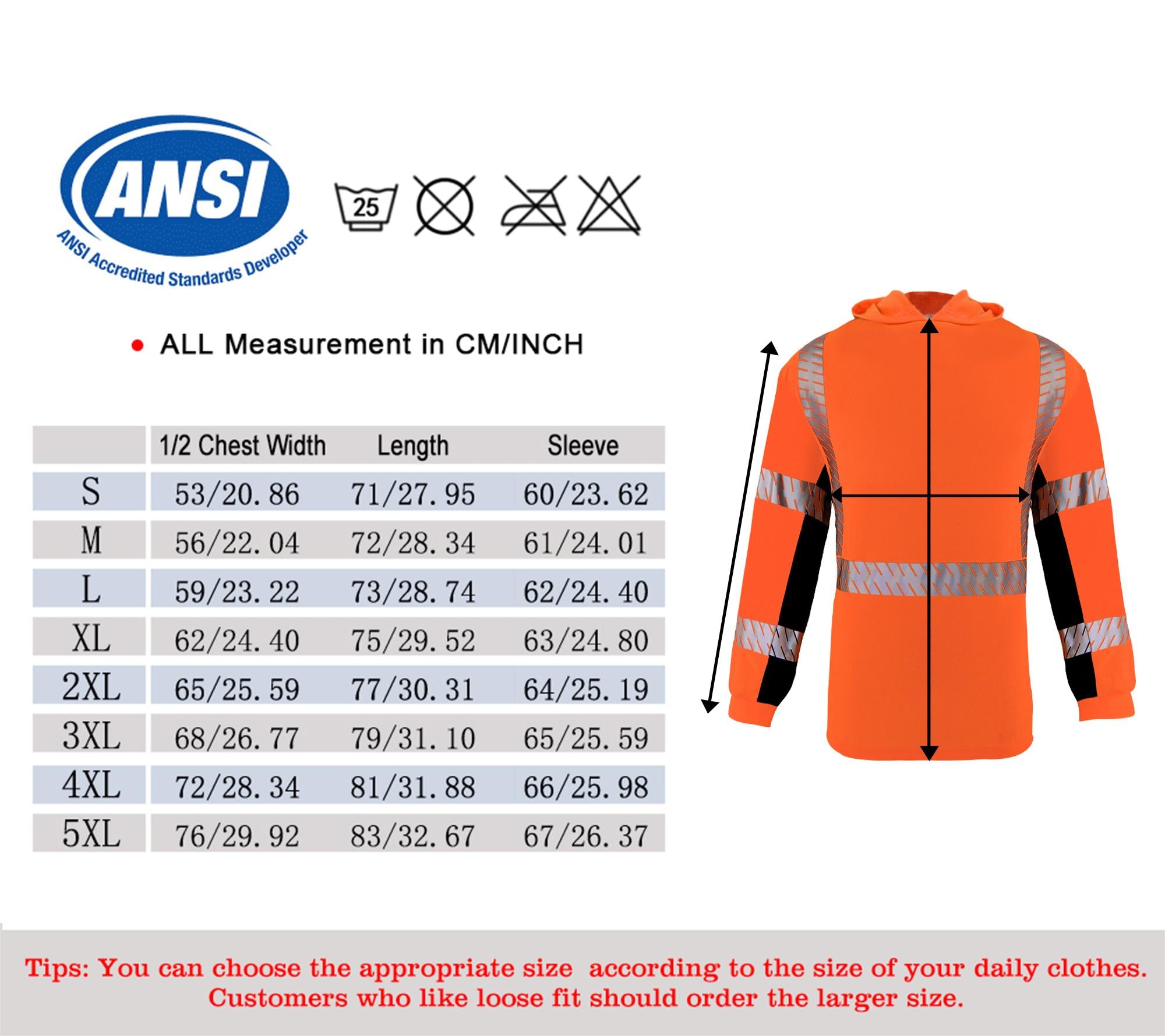 MULTI CHOICES: This high-visibility security shirt is available in a variety of sizes and colors. The colors are pink, orange, purple and yellow, and the sizes are S/M/L/XL/2XL/3XL/4XL/5XL. The fishbone silver reflective heat transfer film shirt, without sewing a pinhole, is very fashionable. For convenience, we have improved the INCH and CM in the size chart. You can choose the appropriate size according to the size of your daily clothes. If you like loose shirts, you should choose the larger size.