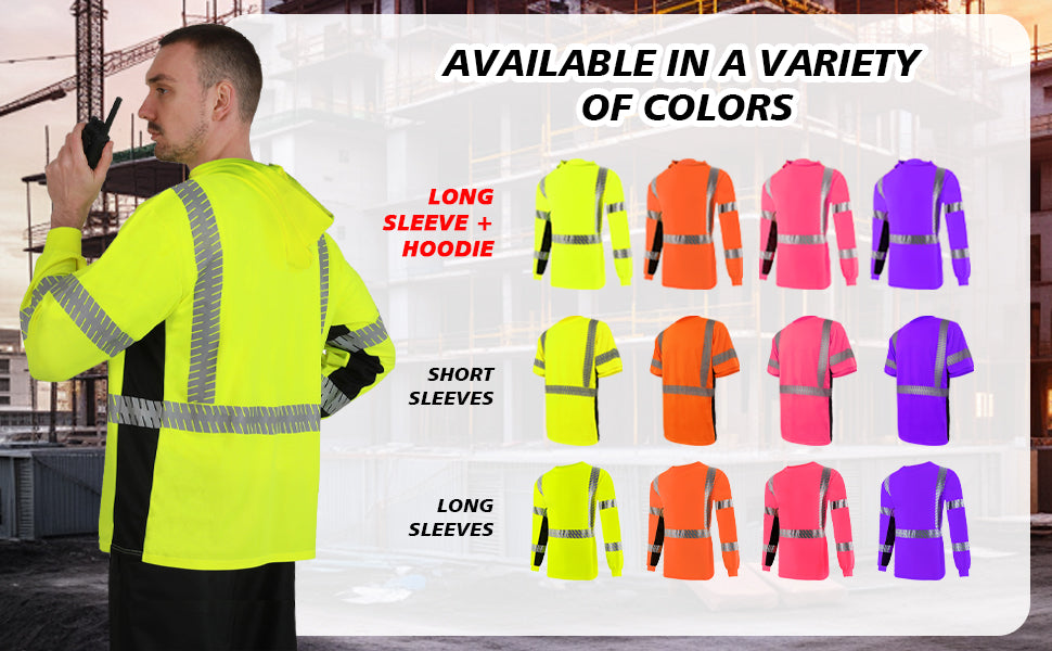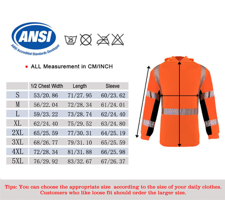 MATERIALS & MAINTENANCE: The long-sleeved safety shirt is worn in cool weather, The clothes are made of 100% polyester bird eye fabric, light and breathable, and moisture-wicking. Hi-Viz safety shirt is designed with a crew neck, making it easy to pull on/off. In order to protect the reflectivity of silver reflective heat transfer film, we suggest that you do not wash it frequently.