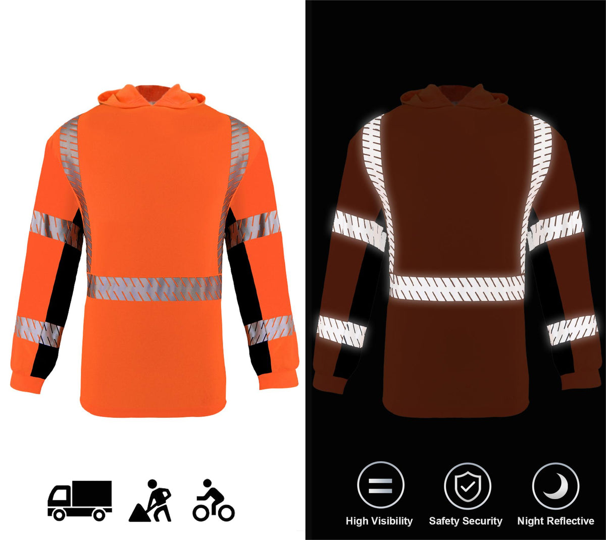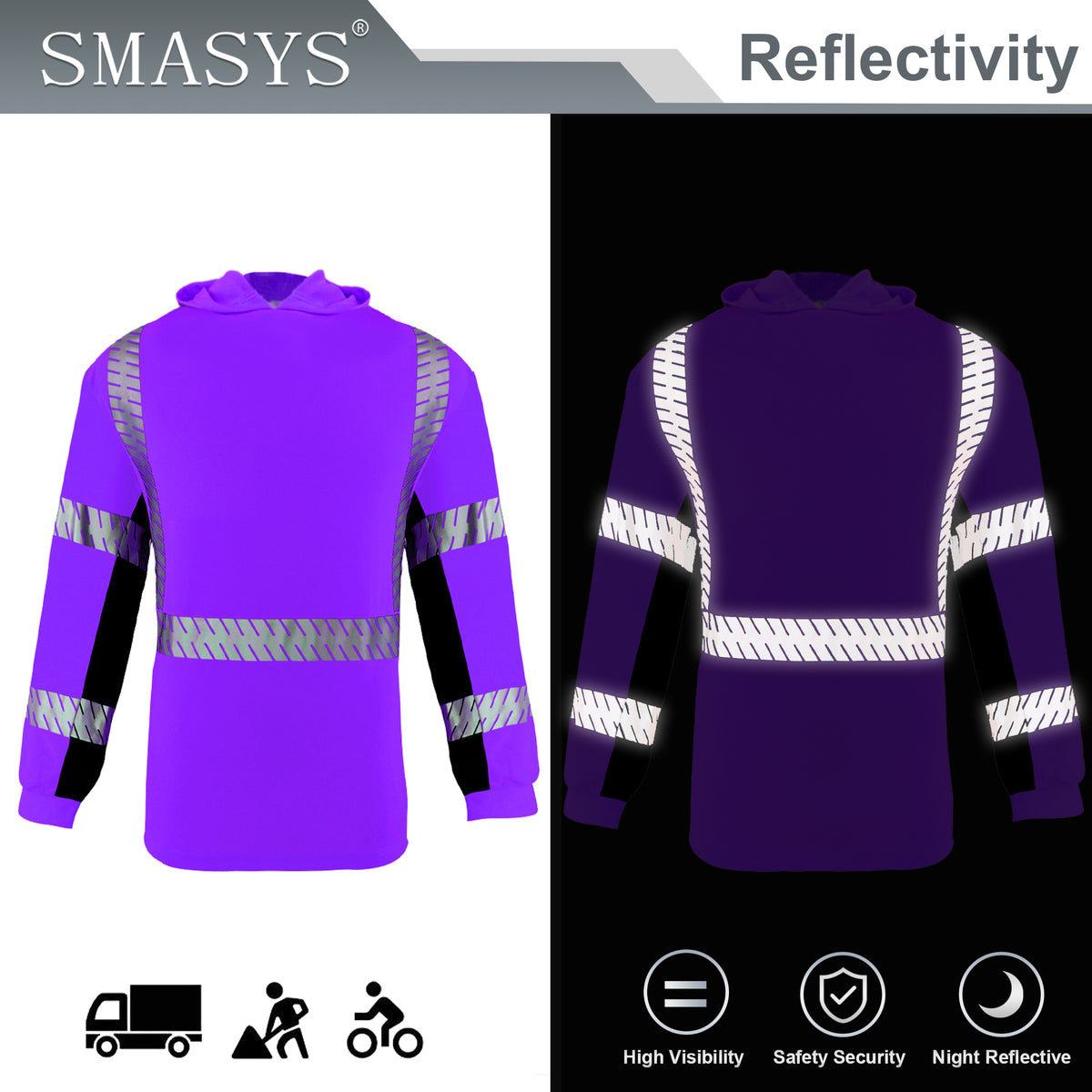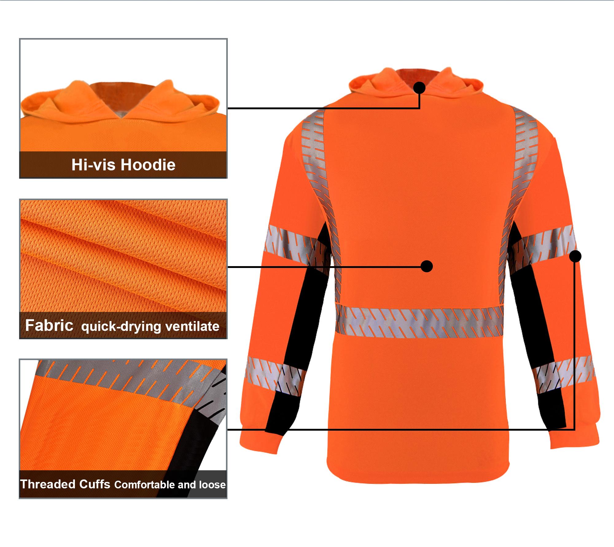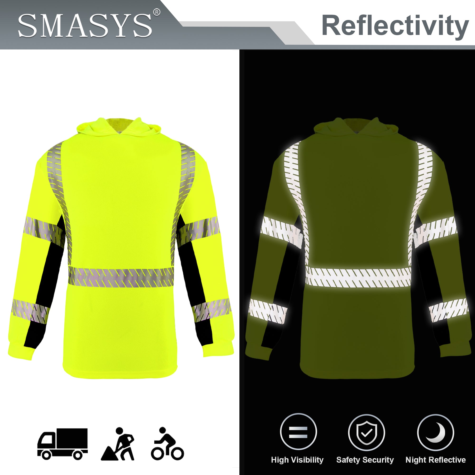 SMASYS Long-sleeve Safety Hoodie with Silver Slanted Carving Reflective Tape
