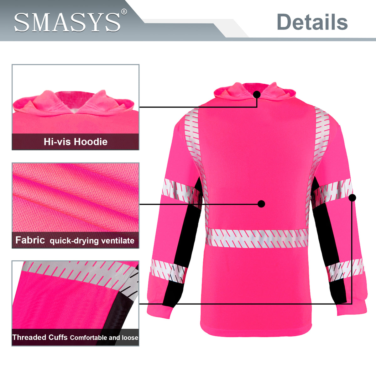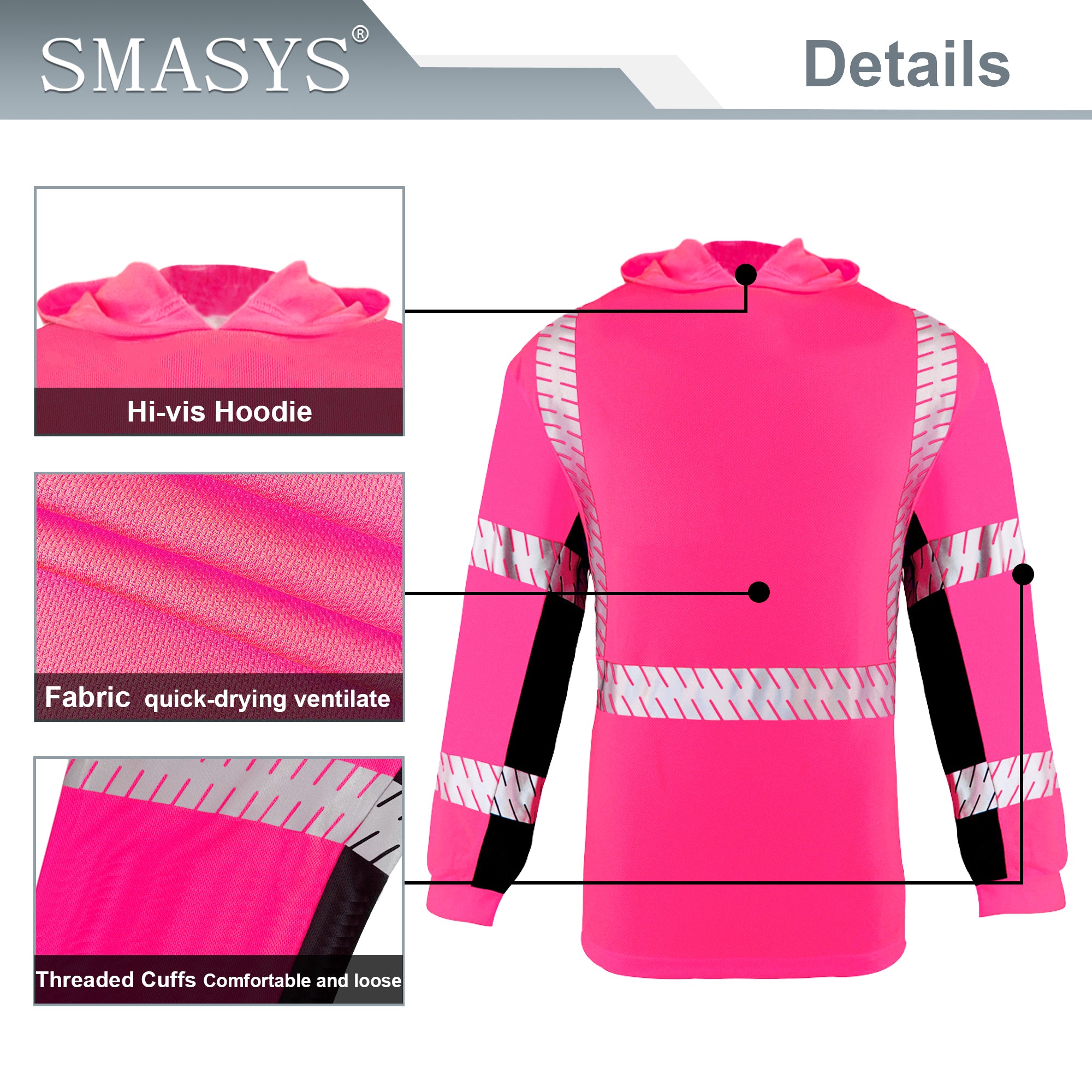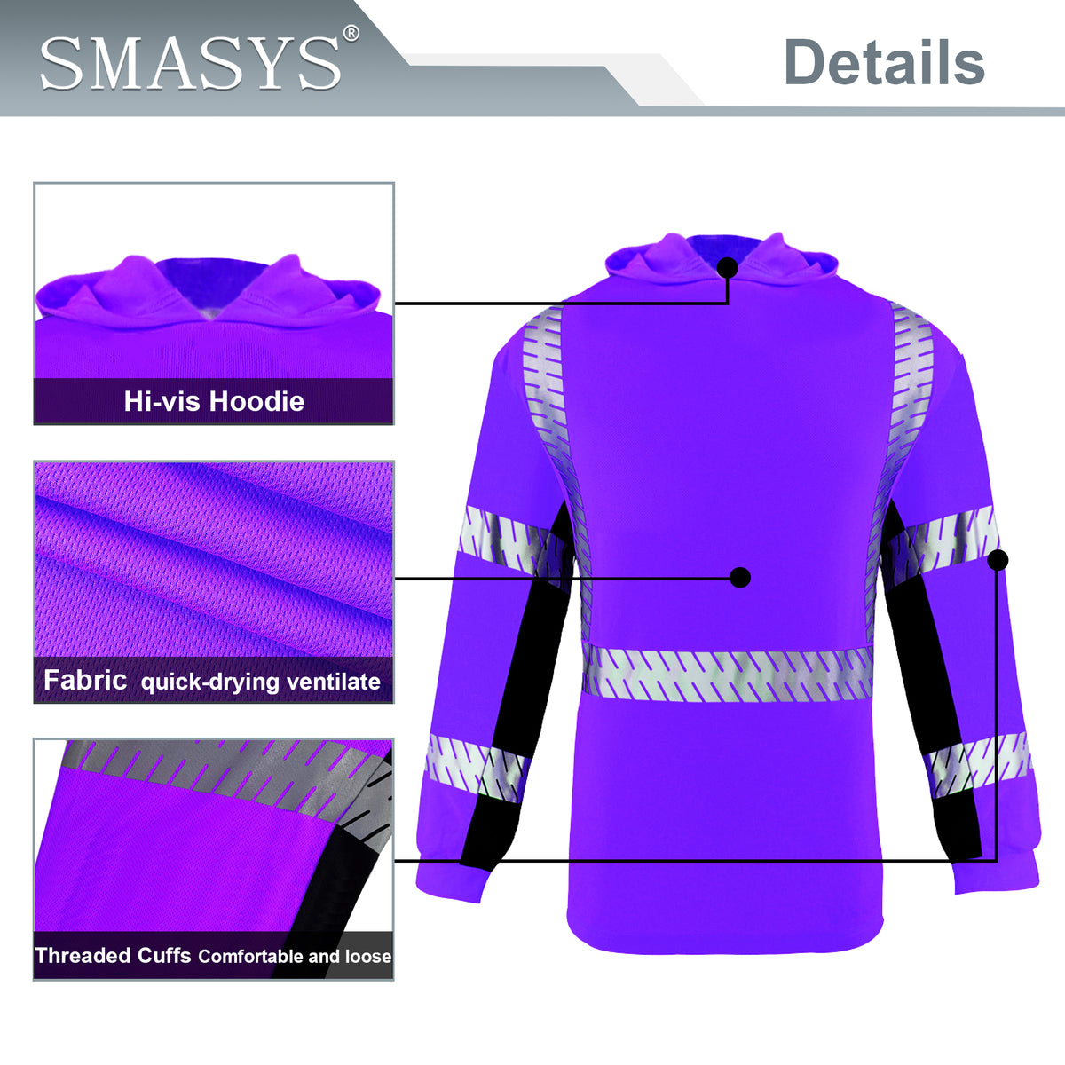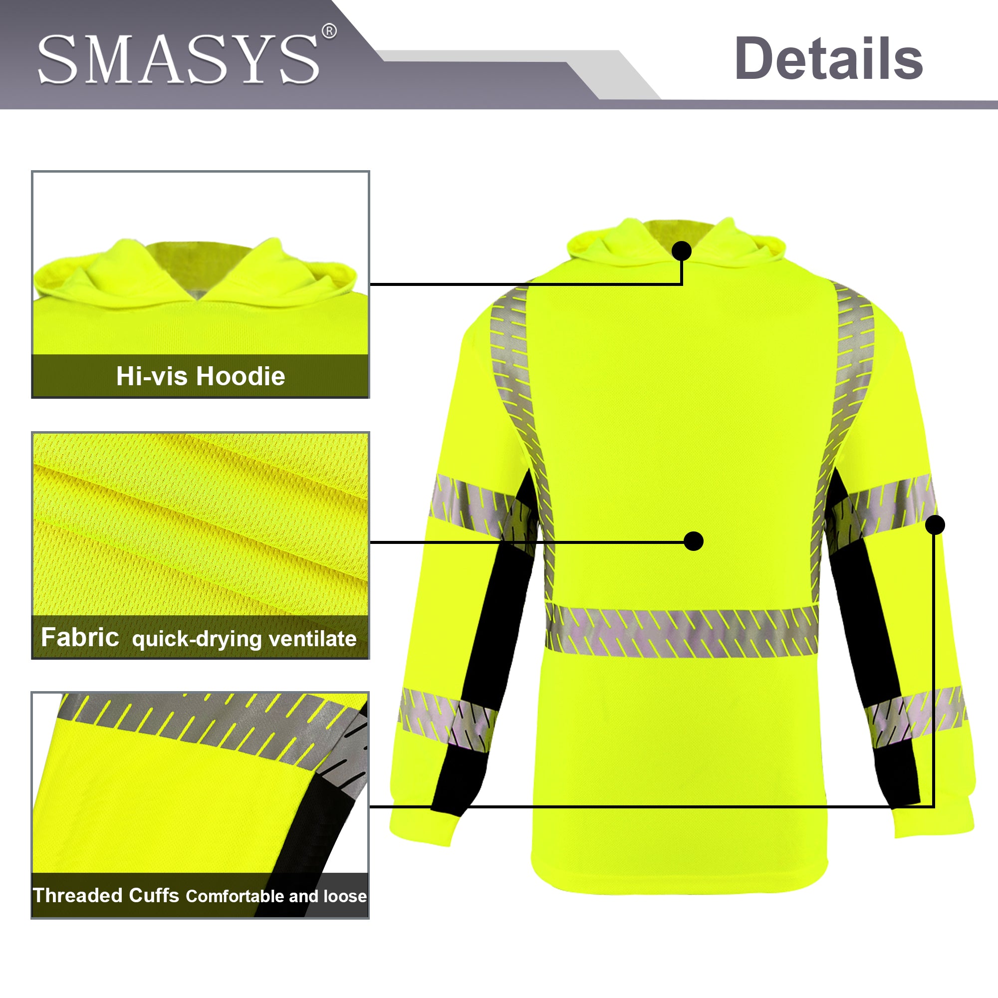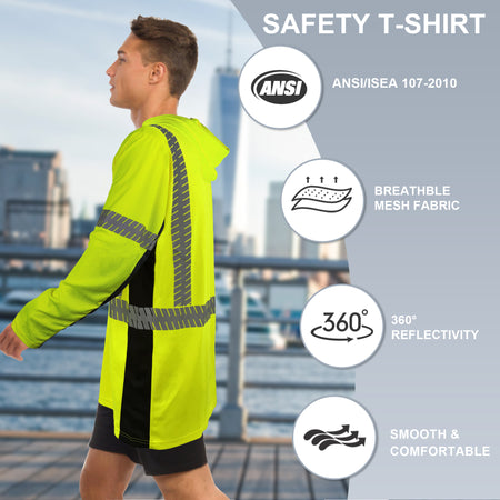 SMASYS Long-sleeve Safety Hoodie with Silver Slanted Carving Reflective Tape