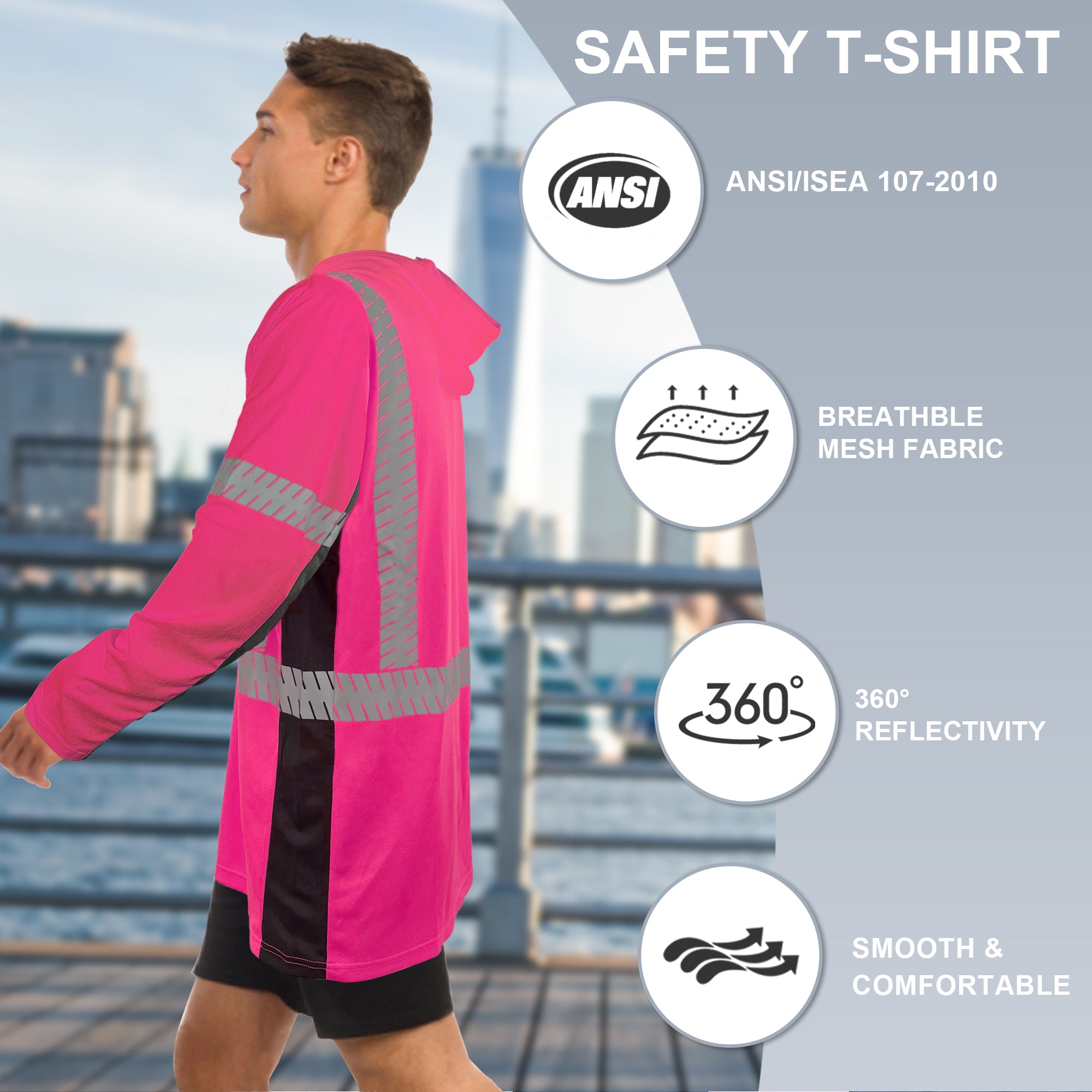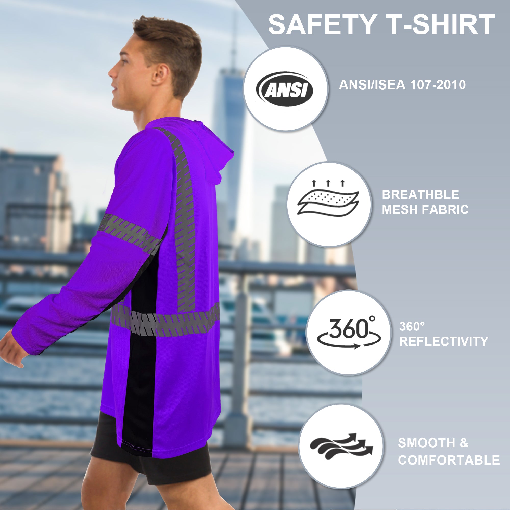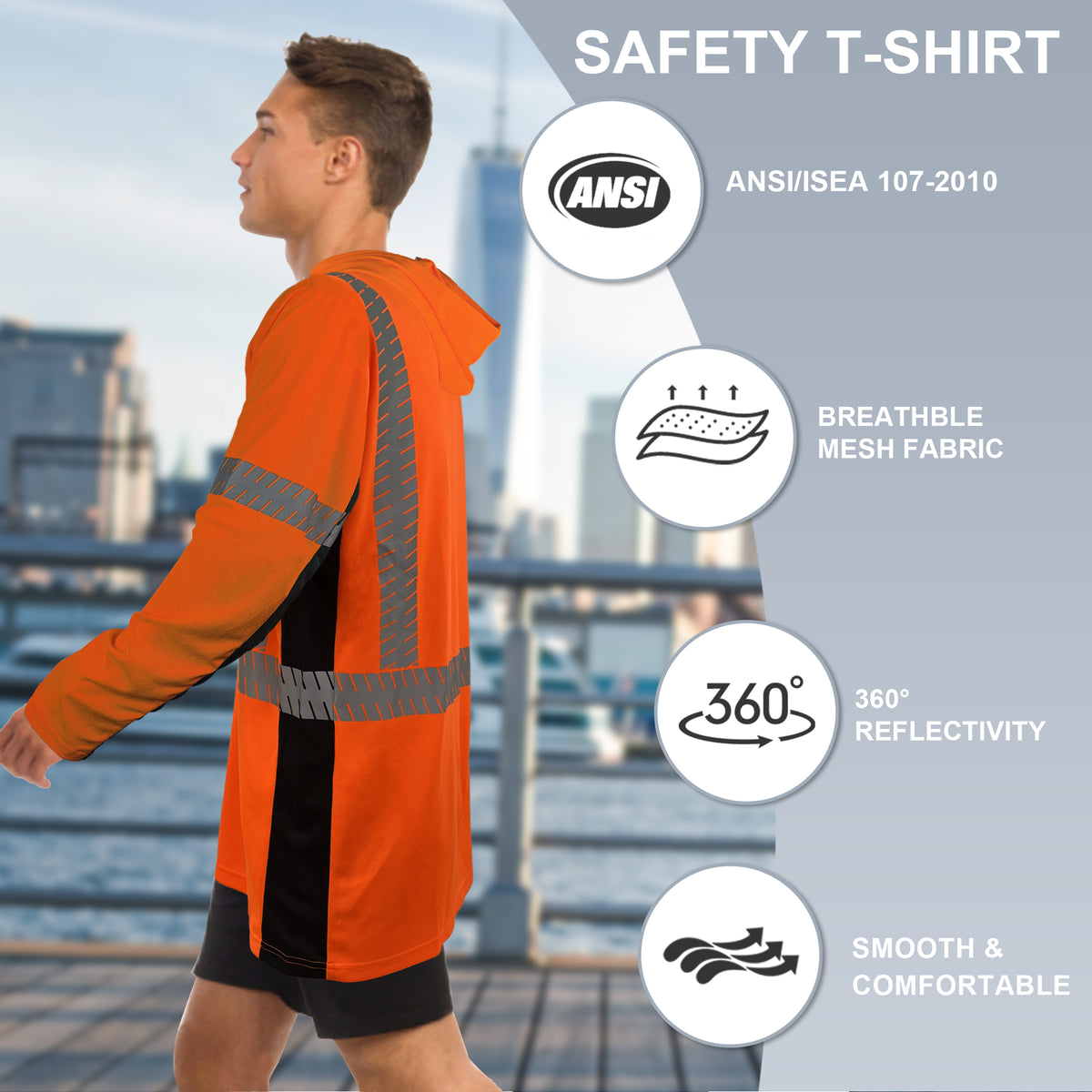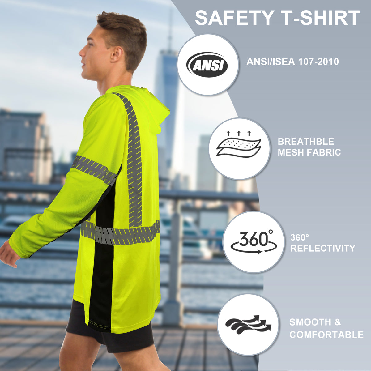 SMASYS Long-sleeve Safety Hoodie with Silver Slanted Carving Reflective Tape