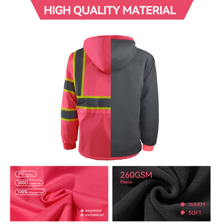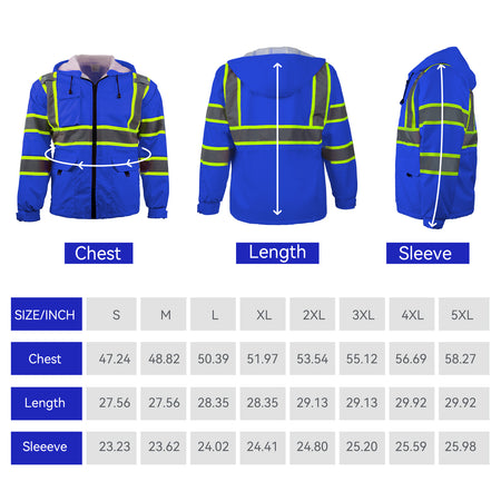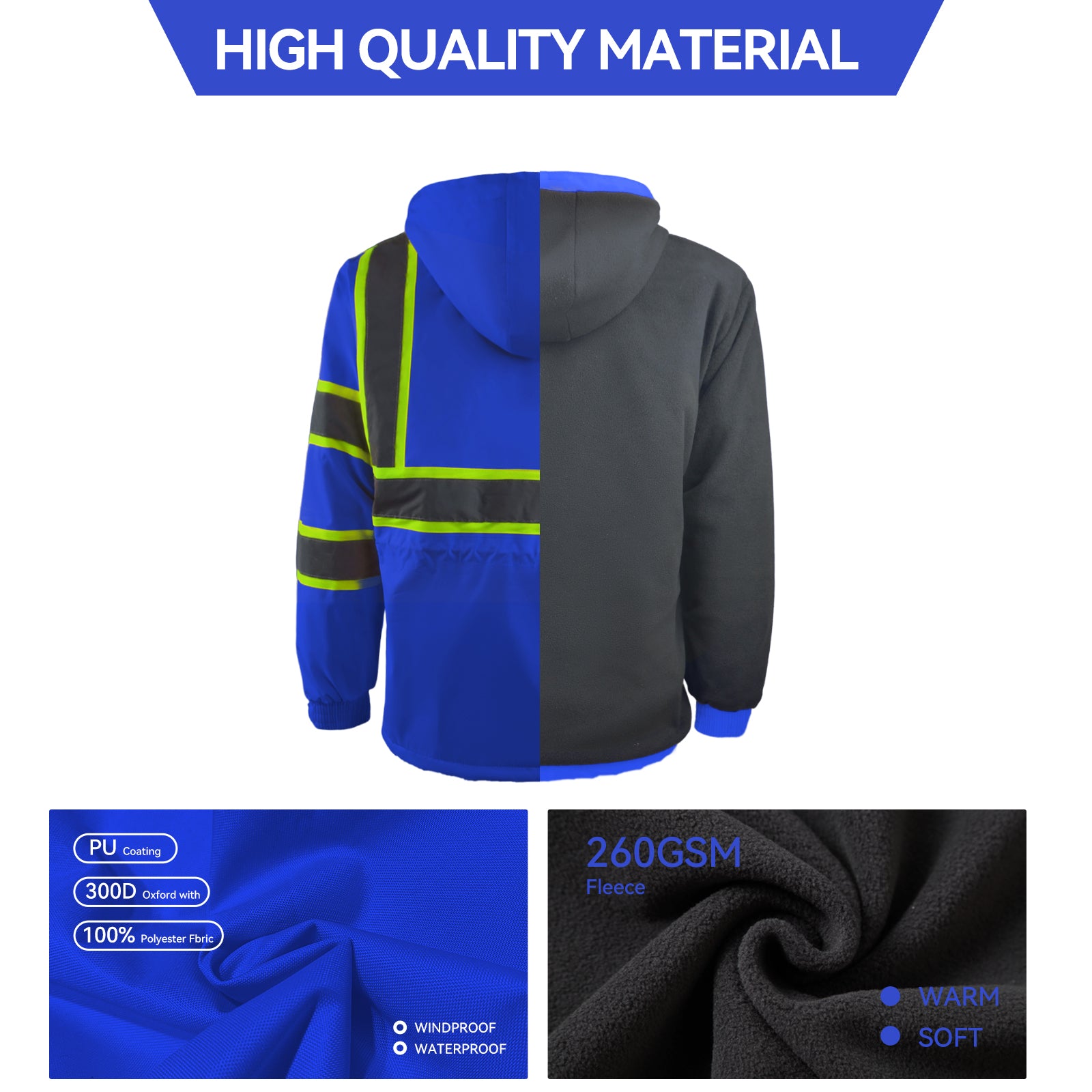 High-Quality Material: The shoulder, chest, and back of this SMASYS reflective jacket are sewn with 2'' wide reflective strips with 3'' contrast fabric to provide maximum visibility and maintain high mobility in extremely bad weather and night working environments. The lining is made of 260GSM fleece, which makes the jacket warmer and more comfortable in cold weather. The front of the reflective jacket is designed with a NO.5 nylon zipper to prevent water from entering.