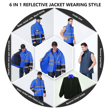 SMASYS Winter Multifunction Reflective Security Safety Workwear 6-in-1 Jacket