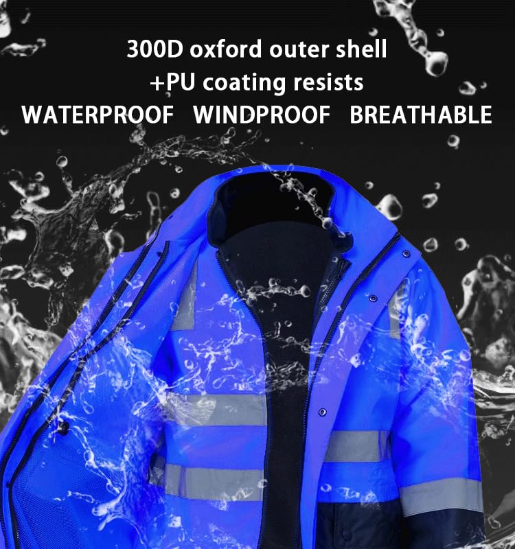 • WATERPROOF & REFLECTIVE: Silver StarTech reflective tape provides high visibility. Jacket is 100% waterproof, windproof, has a removable hood with concealed pouch, and an inner detachable fleece liner. Its shell is made of premium PU-coated Oxford polyester.